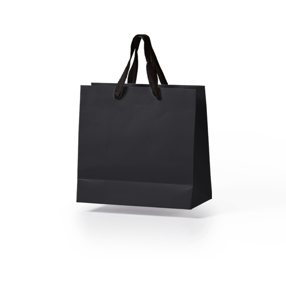 Sacola de papel kraft preta premium com alça gorgurão preto tamanho "G" 32x35x12