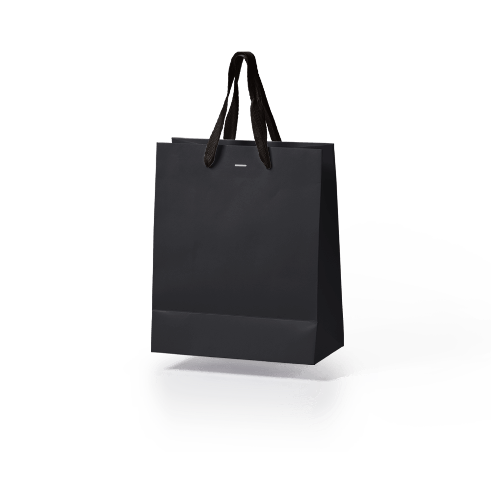 Sacola de papel kraft preta premium com alça gorgurão preto tamanho "M" 25x22x9