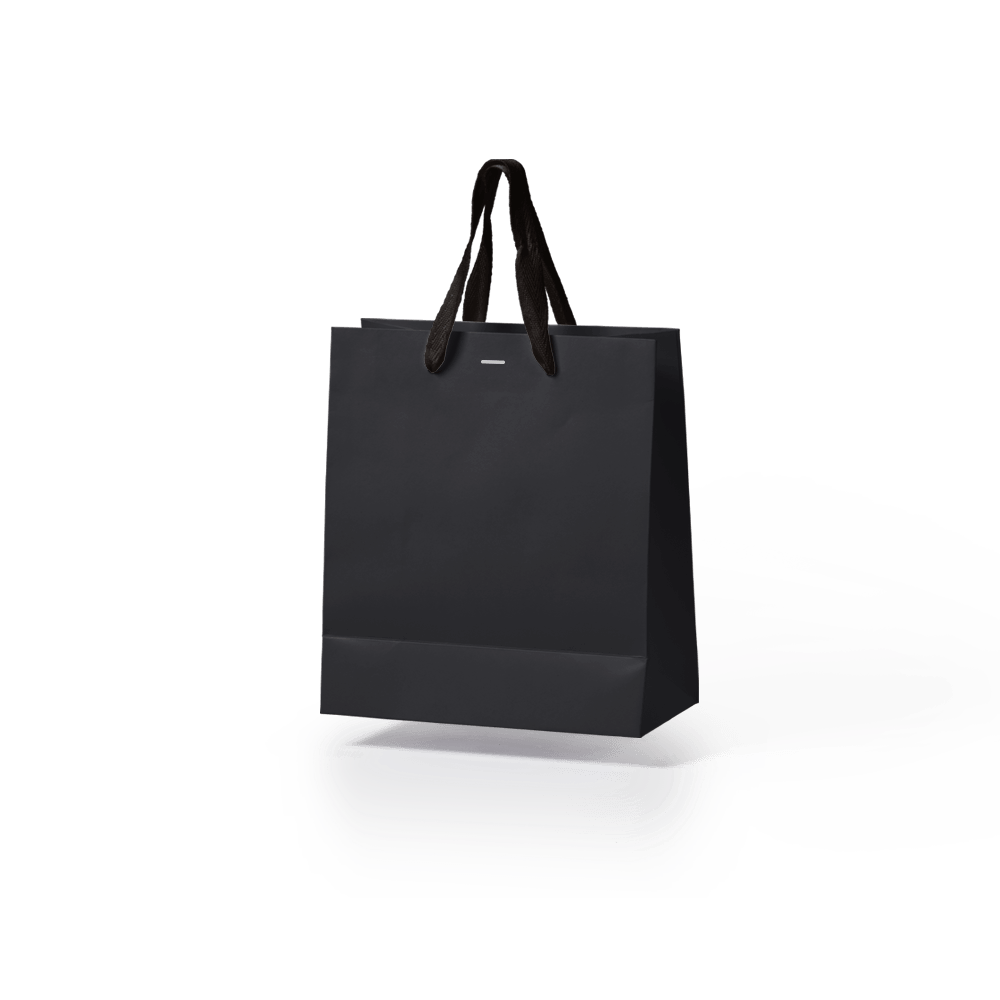 Sacola de papel kraft preta premium com alça gorgurão preto tamanho "P" 17x15x7