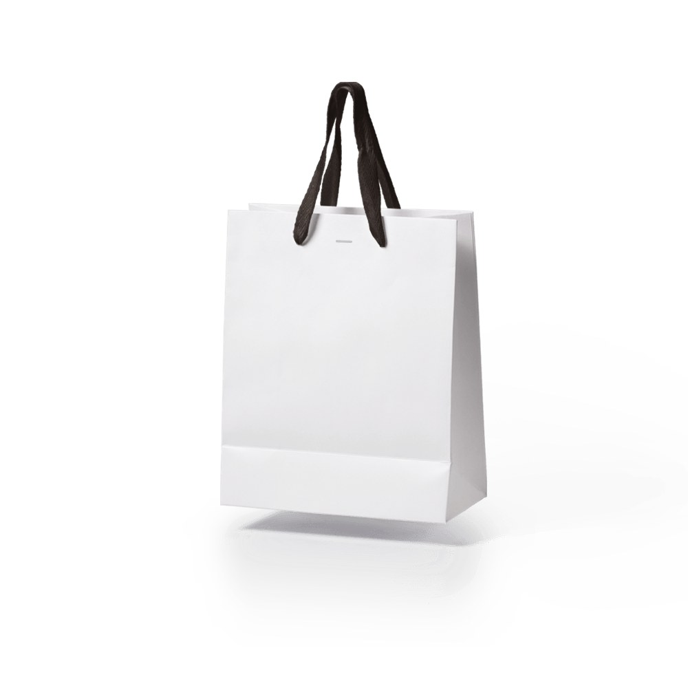 Sacola de papel off-set premium com alça gorgurão tela preto tamanho "M" 25x22x9