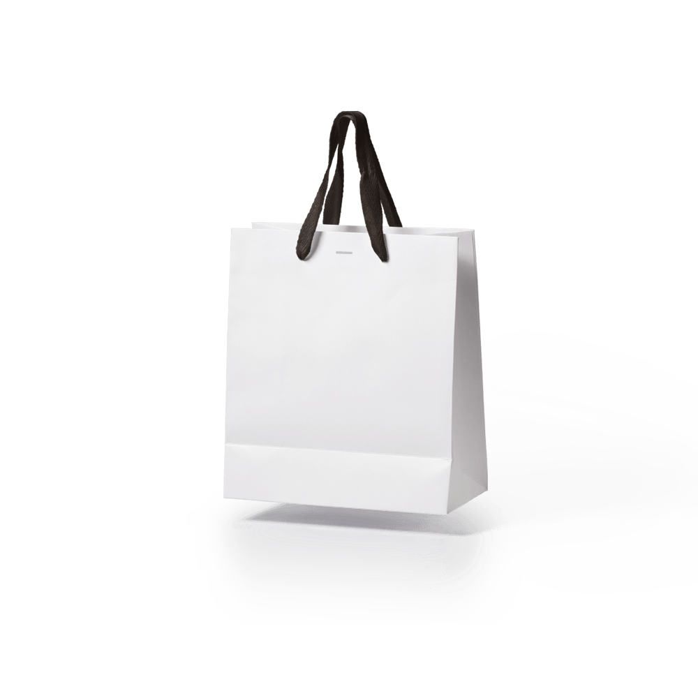 Sacola de papel off-set premium com alça gorgurão tela preto tamanho "P" 17x15x7